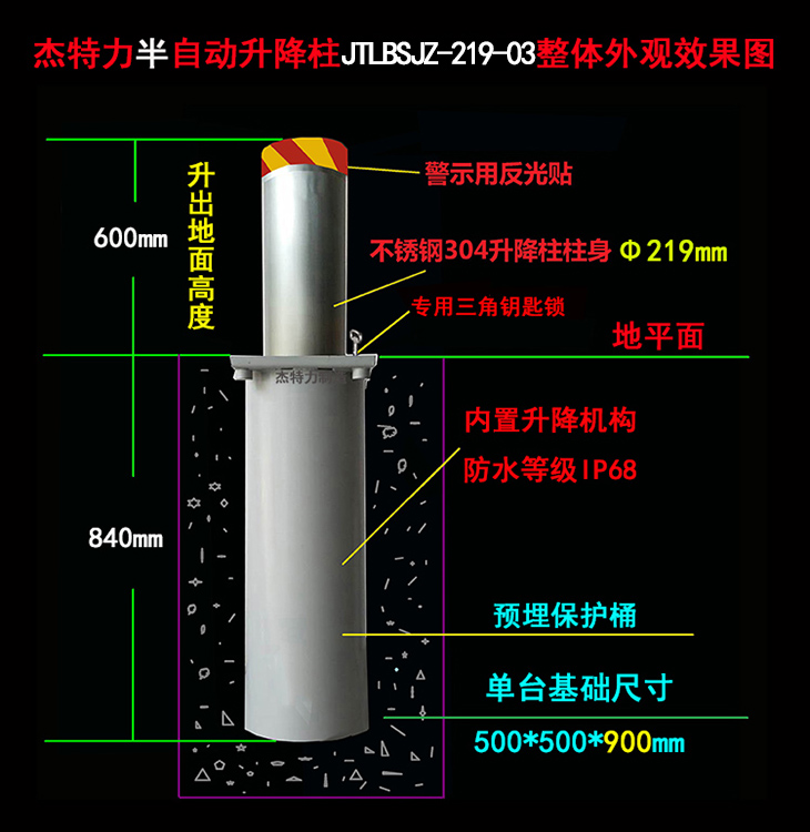 4、升降柱頂部帶有反光標(biāo),夜間警示路人及車輛注意安全。大大降低了值班人員的工作量,有更多時(shí)間執(zhí)行周邊安防工作。升降柱設(shè)置與建筑環(huán)境和諧搭配,產(chǎn)生美觀、大氣、高檔的視覺效果。